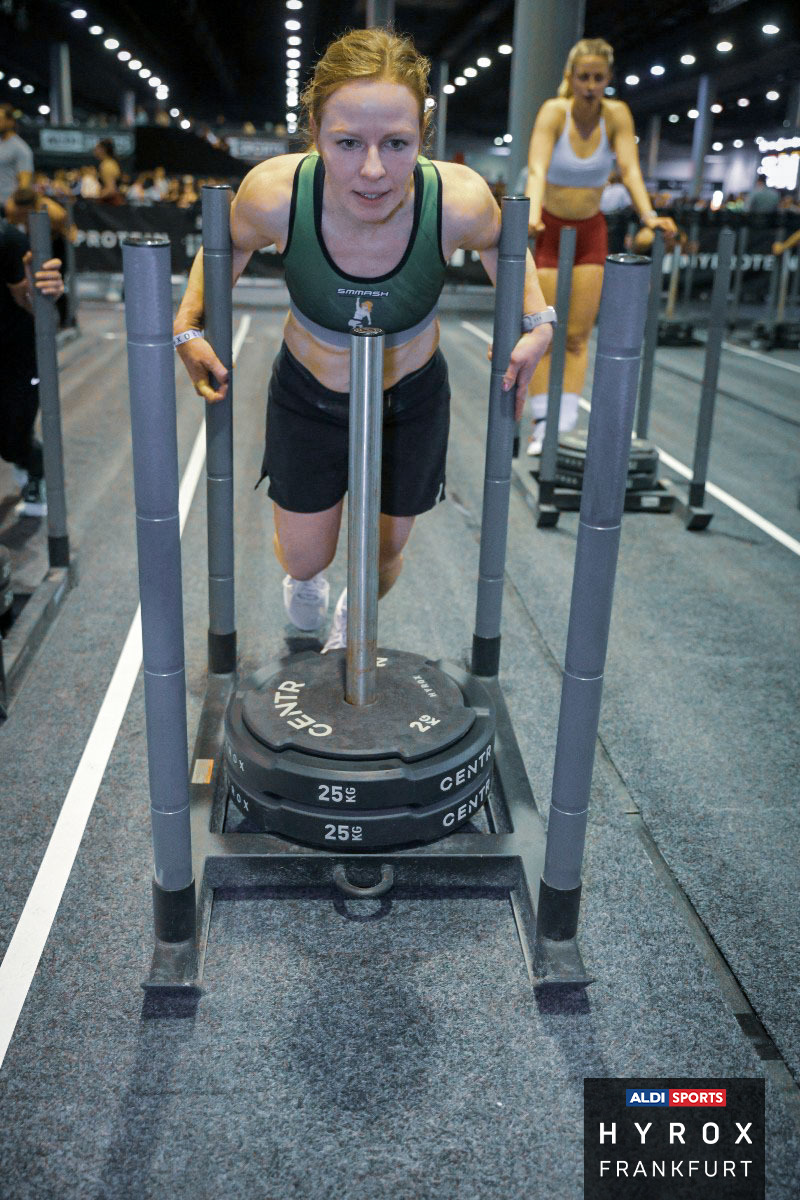 Muahahaha. Das erste Erlebnis hatte ich im Parkhaus. Ich musste Fahrstuhl fahren. War der Puls doch gleichmal auf Betriebstemperatur. Miss "Ich bekomme Panik in geschlossenen Räumen und mit zu vielen Menschen", hat dann direkt mit Betreten der Messehalle die Kontrolle abgegeben. Alter. Laut. Menschen. Voll. Hilfe, wo muss ich hin, wie komme ich, verdammte Hacke, überhaupt zum Start? Schatzi, die Ruhe in Person, ist ebenfalls das Gesicht eingeschlafen, beim Anblick der vielen Menschen. Zum Glück sind alle ganz hilfsbereit und so klärte mich eine Athletin auf, dass wir Starter einen separaten Eingang haben und das sensationelle Verkehrsleitsystem in der Halle, vornehmlich zum lotsen der Zuschauer galt. Also gab es nen Abschiedskuss und Sven konnte für 1,5 Stunden an die frische Luft, während ich versucht habe, mich im Athletenbereich zu orientieren. Mein größter Schock, es gäbe nicht genügend Toiletten und man muss ewig anstehen, dröselte sich auf, als ich sah, dass wir nochmal unsere eigenen Klos am Ende der Halle hatten. Ohne Schlange. Ich trug die frohe Botschaft weiter, mit dem Wissen, eine gute Tat vollbracht zu haben. Als ich dann ungefähr wusste, wo ich hin muss, wie ich die Tasche loswerde und alles halbwegs klar war, hab ich nochmal nach Sven gesucht. Ein bisschen Motivationskuscheln und dann ging es in den Warm-Up- Bereich. Und zwischendurch zur Toilette. So 100 Mal. Die Zeit ging schnell um und zack, war auch schon Start. 2,3 Runden laufen und dann jedes Mal zum Workout. Beim 3. Mal am "In-Tor" rein. Sollte nicht so schwer sein. Hahaha. Nach dem Schlitten - ich habe wohl meinen Kopf dort vergessen - bin ich ne Runde zu wenig gelaufen. Ohne Brille und weil mein Name zu schnell nach unten gerutscht war, konnte ich die Anzeigetafel auch nicht richtig lesen. Und bums - 5 Strafminuten. Hurra. Zu doof zum zählen. Danach hab ich nur noch mit Fingern die Runden gezählt. So ging's. Sah vermutlich komisch aus. Erst hat sie nen Daumen draußen und dann Daumen und Zeigefinger. Und dann wieder nur Daumen. Usw. Egal. Wie ich aussah, war mir recht schnell bums. Ich war mit atmen beschäftigt. Als ich die Burpee-Line durch hatte und mich gerade Glücksgefühle durchströmen wollten, sagte man mir "auf der anderen Seite Burpees zurück". Mir ist das Gesicht entglitten. Also wieder runter. Minuten lang liegen bleiben, aufquälen, hüpf und von vorn. Hahaha. Hauptsache Spaß haben, haben sie gesagt. Joah, nach 1,5 Stunden hatte ich es dann auch mal, ich war im Ziel. Zuvor habe ich aber noch den Judge an den Wallballs in die Verzweiflung getrieben. Er wollte mir so nett Tipps geben, aber ich glaube, nach 30 hat er gedacht - lass sie halt. Besser wird's nicht. Nun ja, im Ziel angekommen dachte ich, ok, schön, dass ich jetzt mal mitreden kann, aber auch schön, dass es vorbei ist.